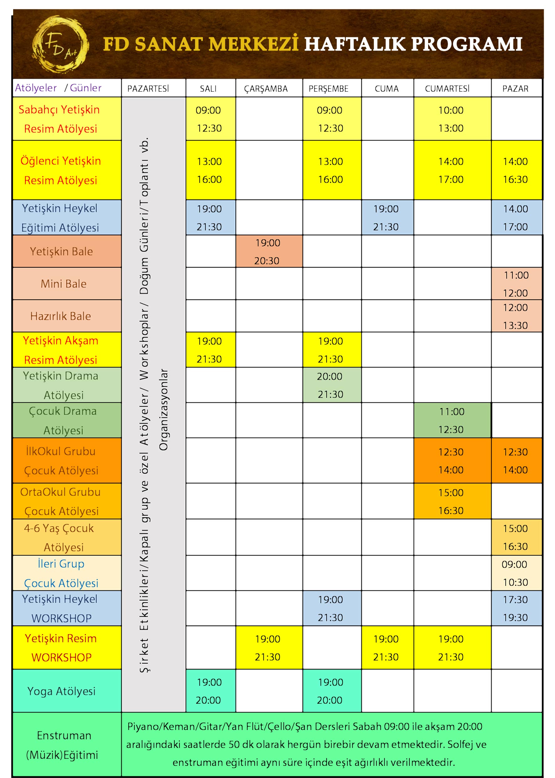 FD ART AKADEMİ HAFTALIK DERS PROGRAMI