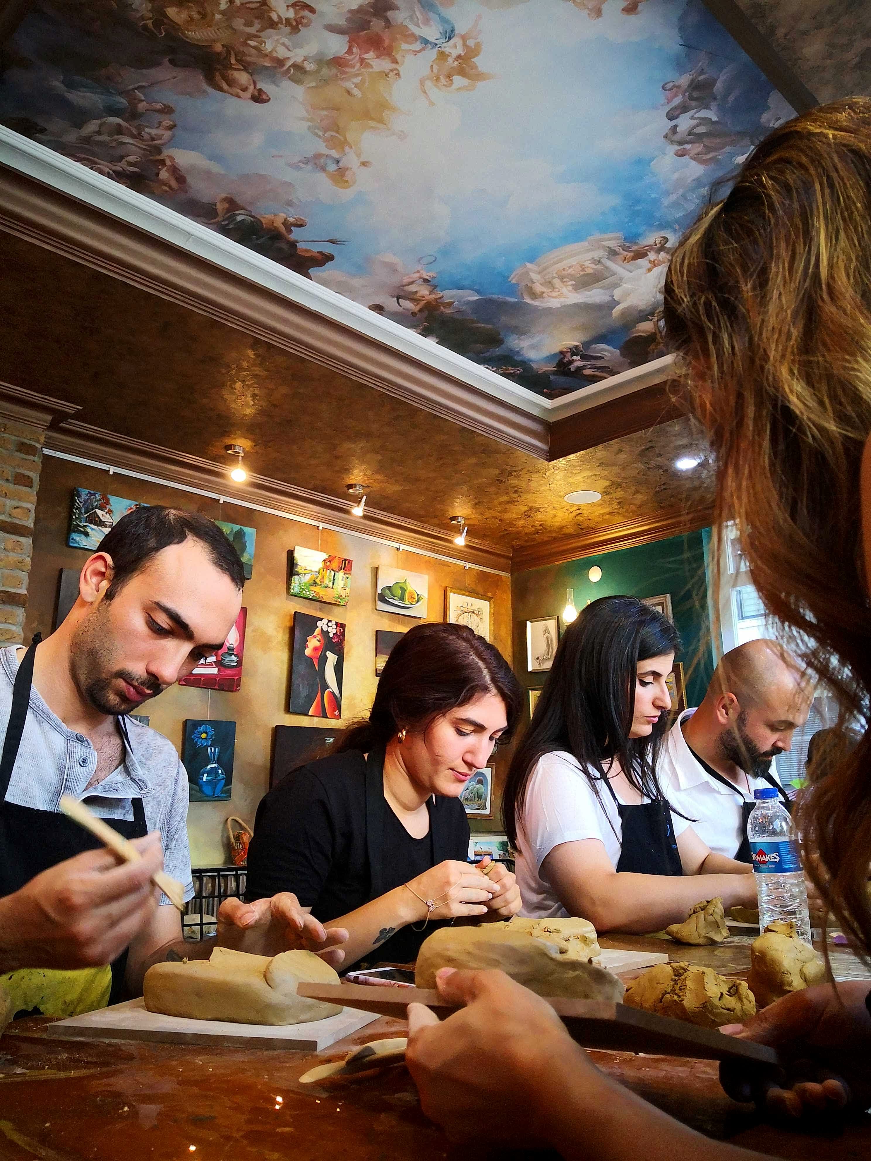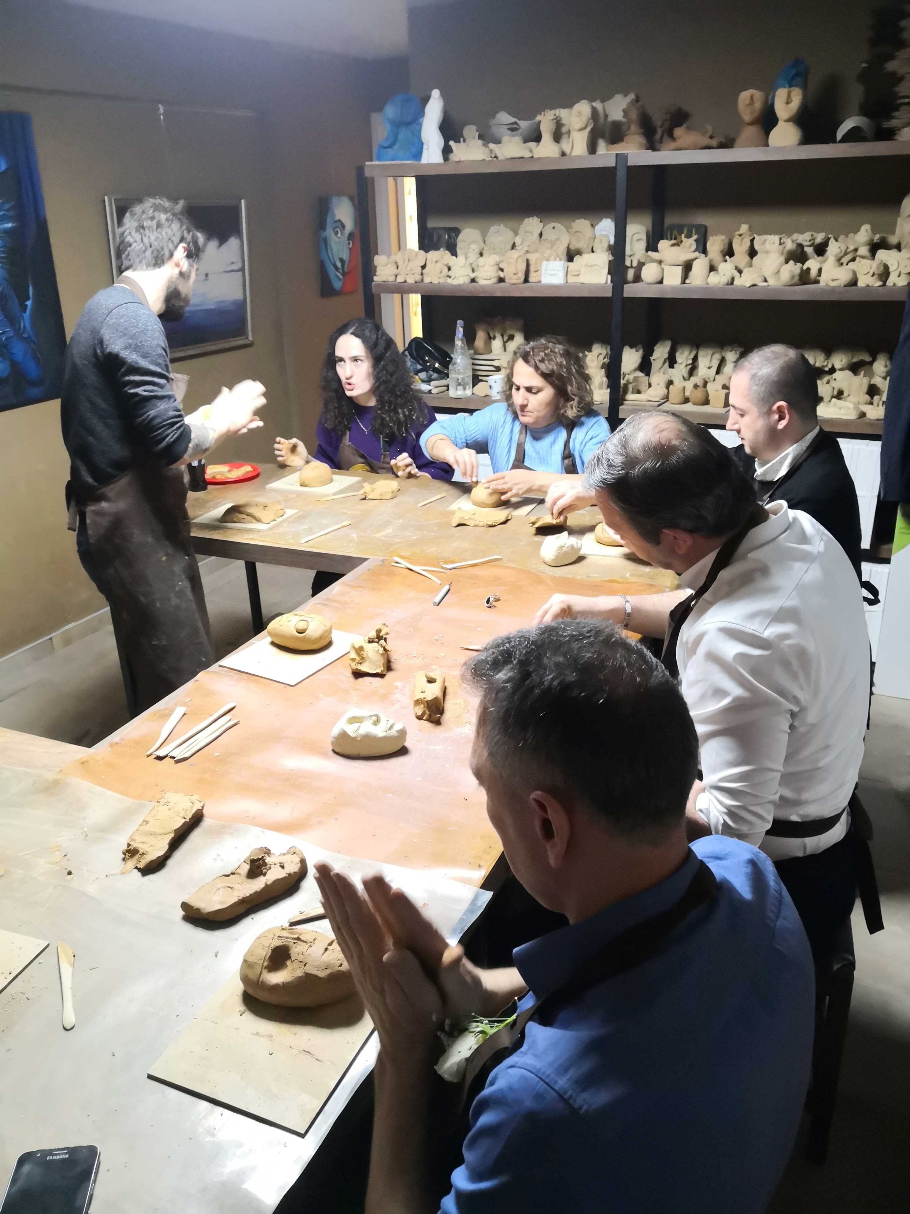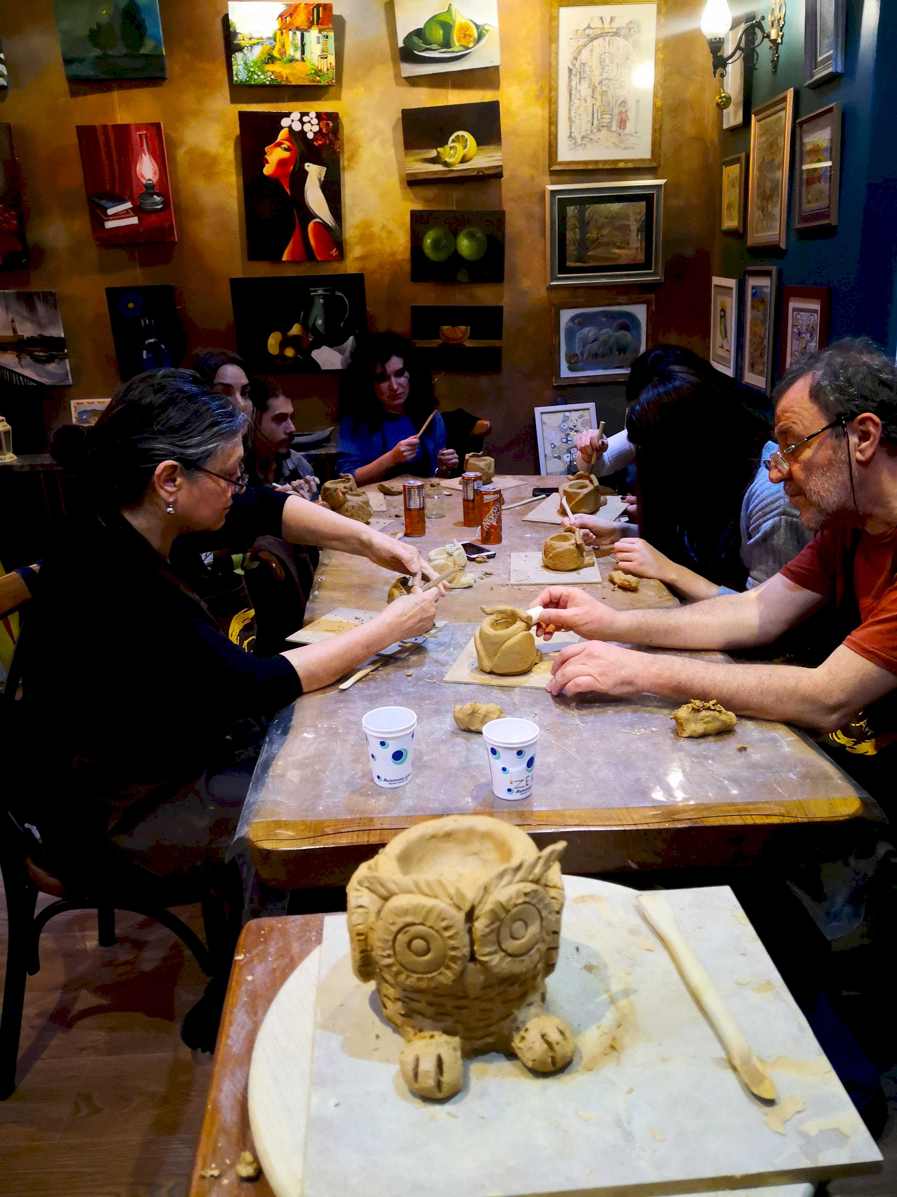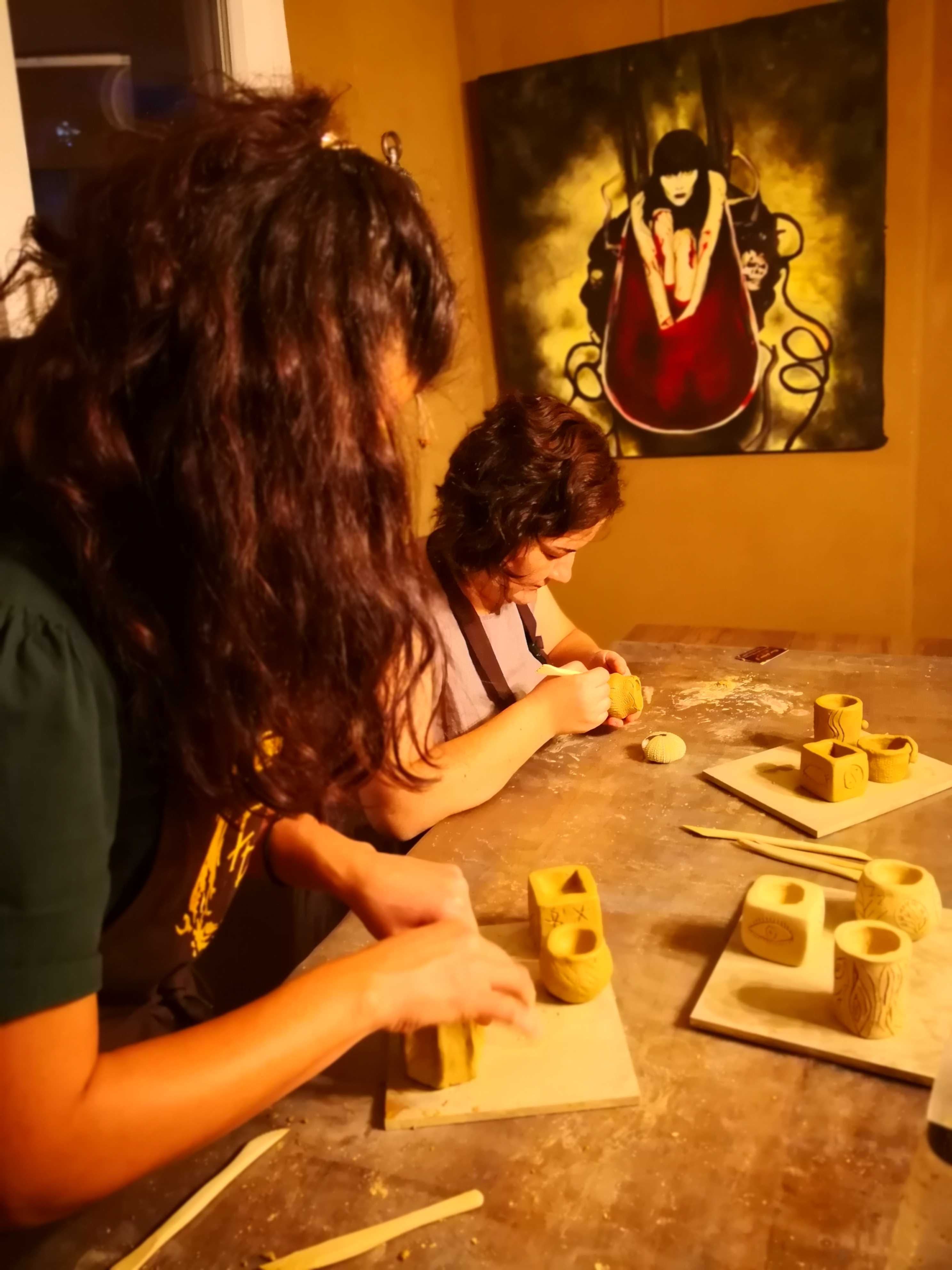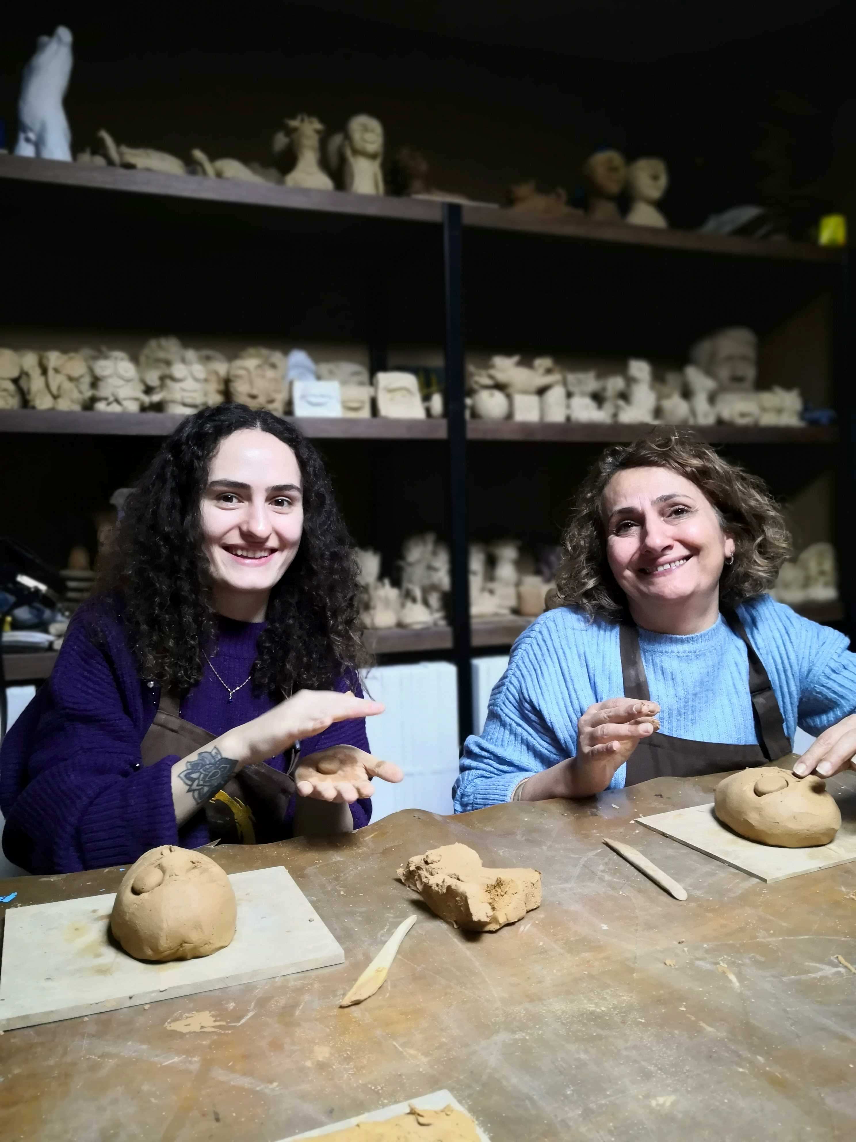 FD Sanat Merkezi Heykel workshoplarında her katılımcı harika bir deneyimle mutlu, deşarj olmuş, kafasını boşalmış ve eli başarılı eseriyle dolu ayrılır. Nasıl mı? Öncelikle seansı yöneten heykeltıraşımız süre yönetimi ve işin en eğlenceli kısmı sizlere kalsın diye workshop öncesi seçerek geldiğiniz konu malzemelerini hazırlamış, modelaj kalemleriniz ve önlüklerinizle sizi beklerken, sizler sadece yiyecek ve içeceklerinizle belirlenen saatte atölyemizde bulunarak serüvene başlıyorsunuz. Heykeltıraşımızın detaylı anlatımıyla keyifli müzikler eşliğinde aşamalandırarak adım adım yönlendirmesi ile kendi yorumlarınızı da katarak keyifli sohbetler eşliğinde çalışmalarınızı tamamlıyorsuz. Bu etkinlikte katılımcılarımız yaratıcılıklarını kullanarak kile şekil verirken bir yandan da çamurla terapi tadında rahatlama ile unutamayacakları bir deneyim yaşar. Yetenekli ya da deneyimli olmaya gerek yok. Bu harika deneyimde önemli olan keyif almak ve sosyalleşerek güzel vakit geçirmek. Etkinlik sonrası final fotoğrafları ile her bir katılımcının kendi elleri ile yaptığı eseri sergilenmeye hatta kullandığımız özel kil sayesinde fırınlanmaya ihtiyaç duymadan havayla teneffüs ederek 1 hafta içinde kuruyacağından renklendirilerek ev veya ofisinizde kullanılmaya hazır olacak. Keyifli bir heykel atölyesi deneyimine hazır olun!
