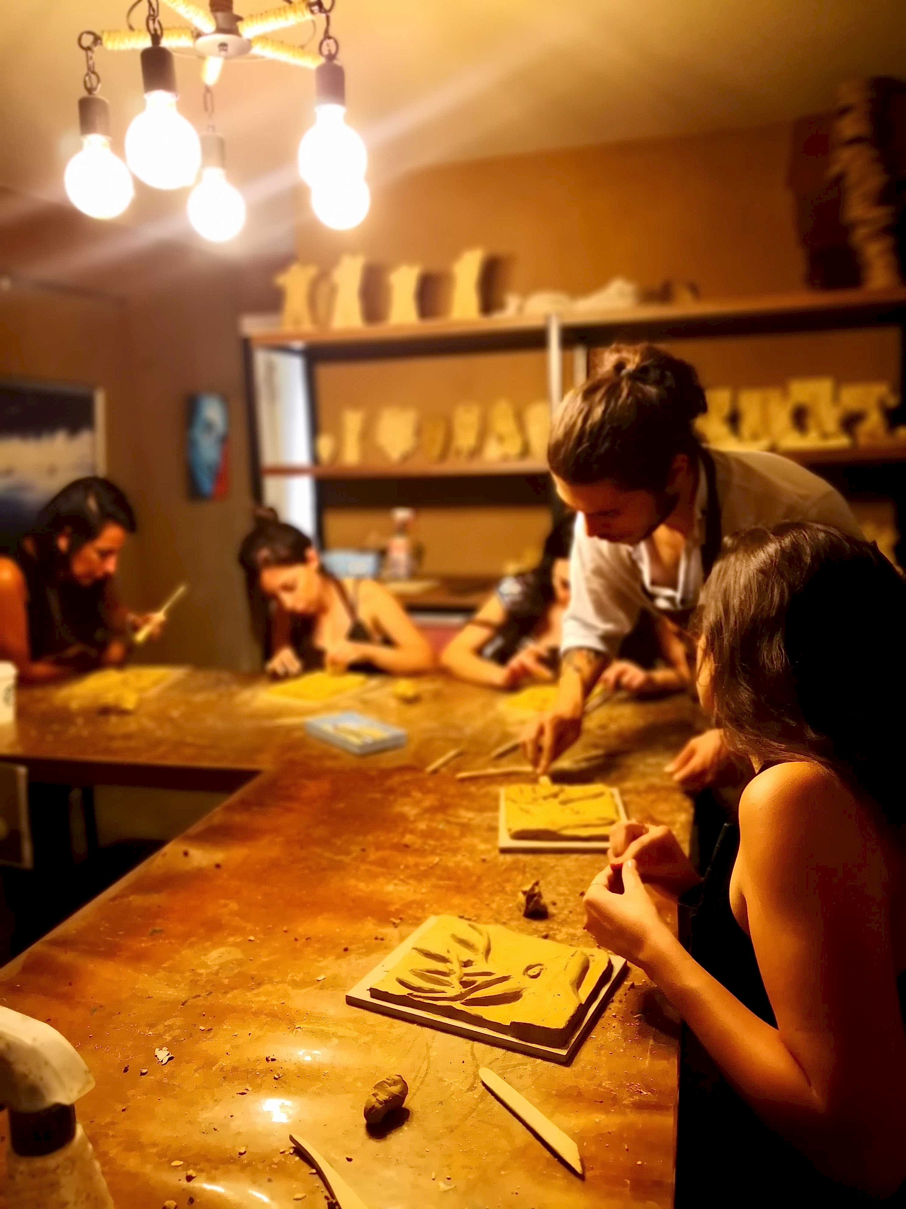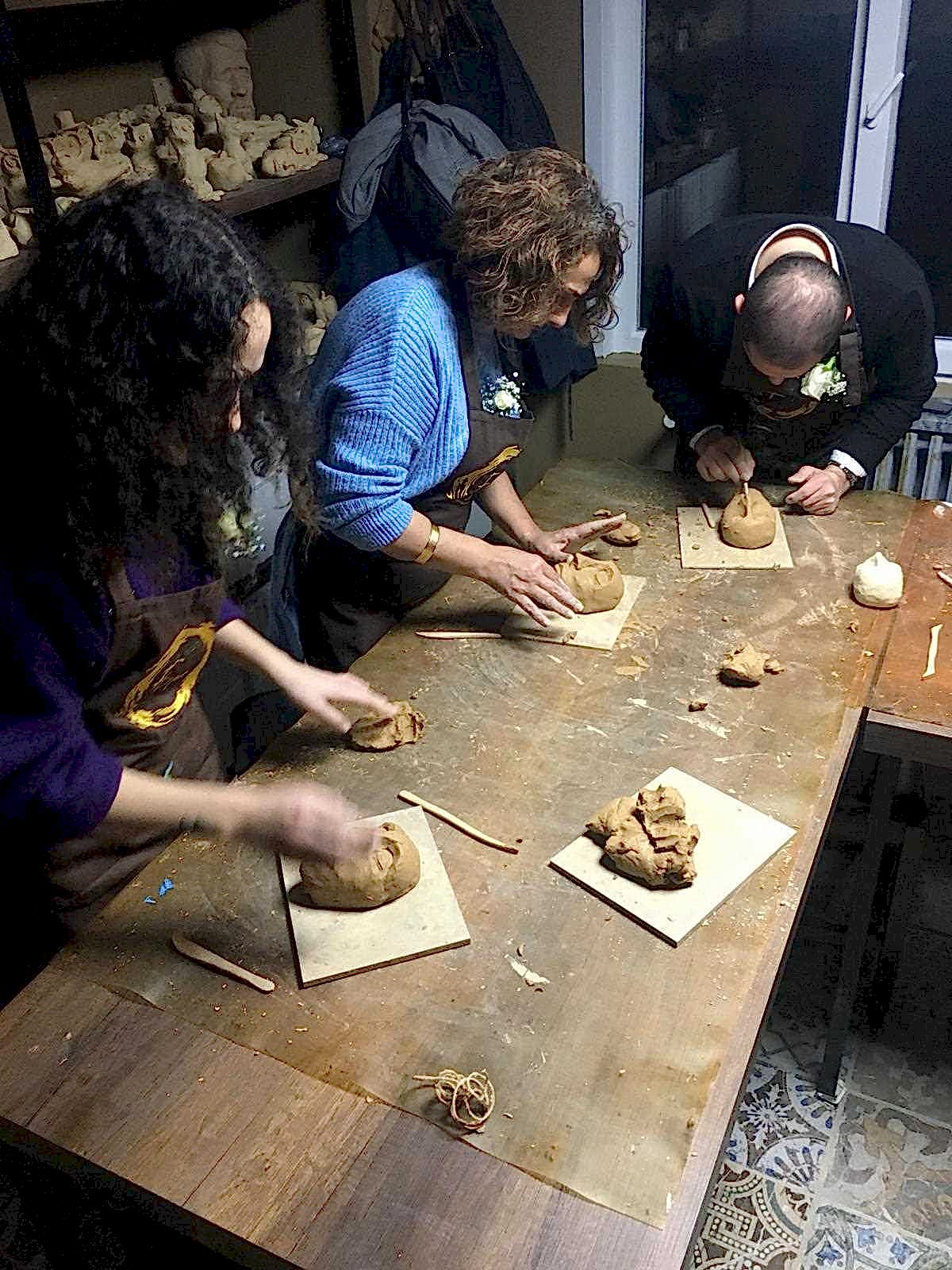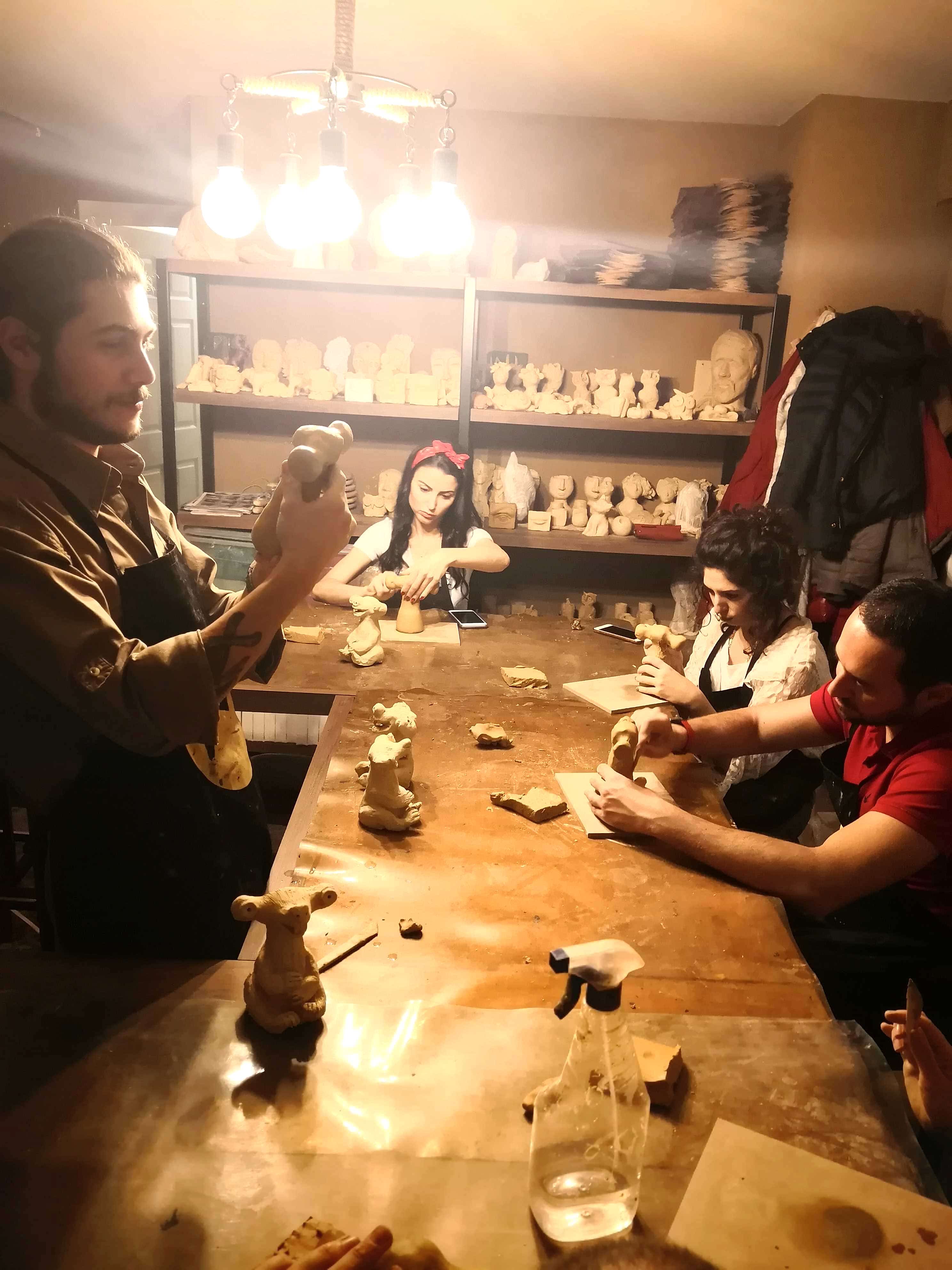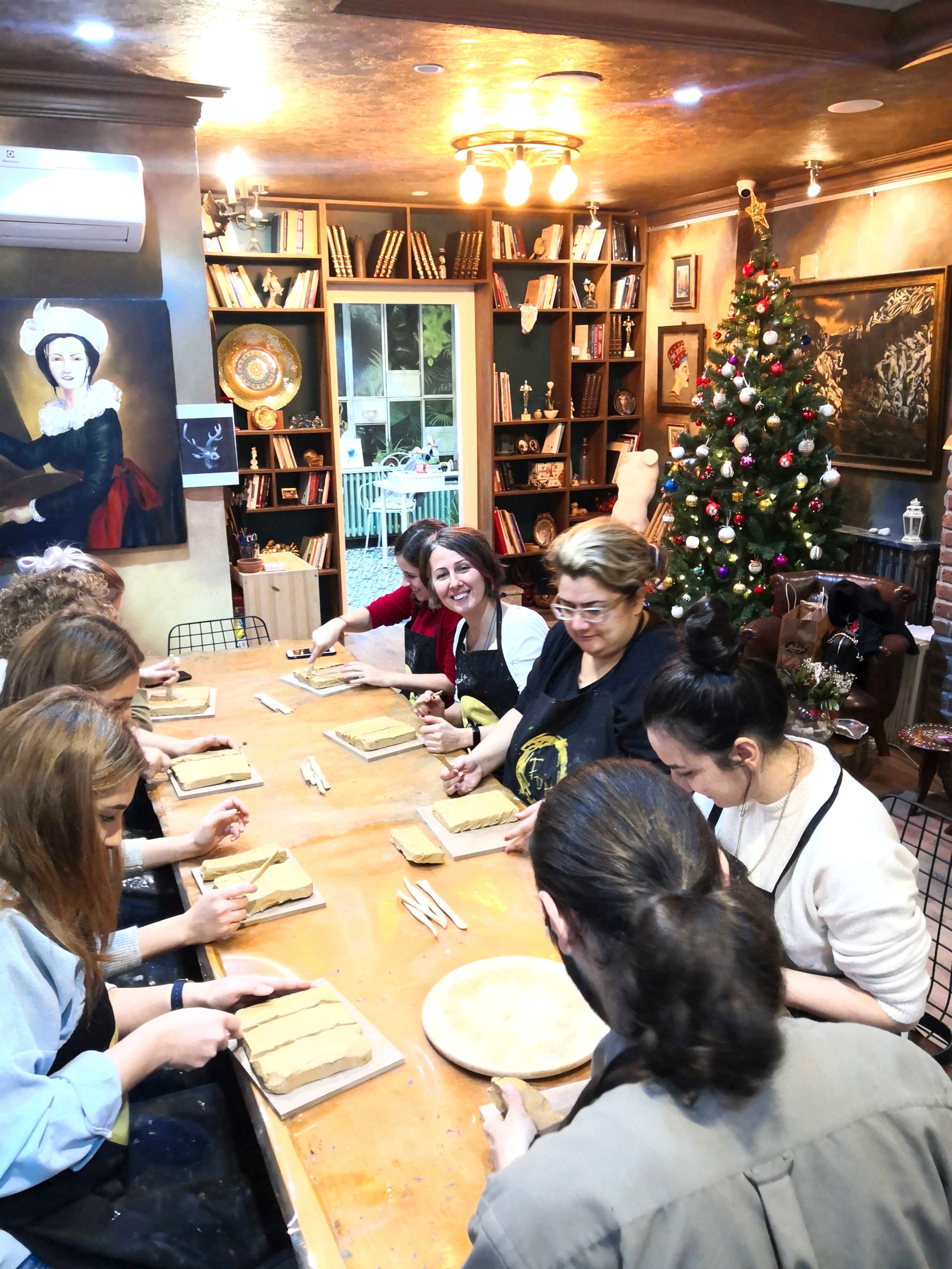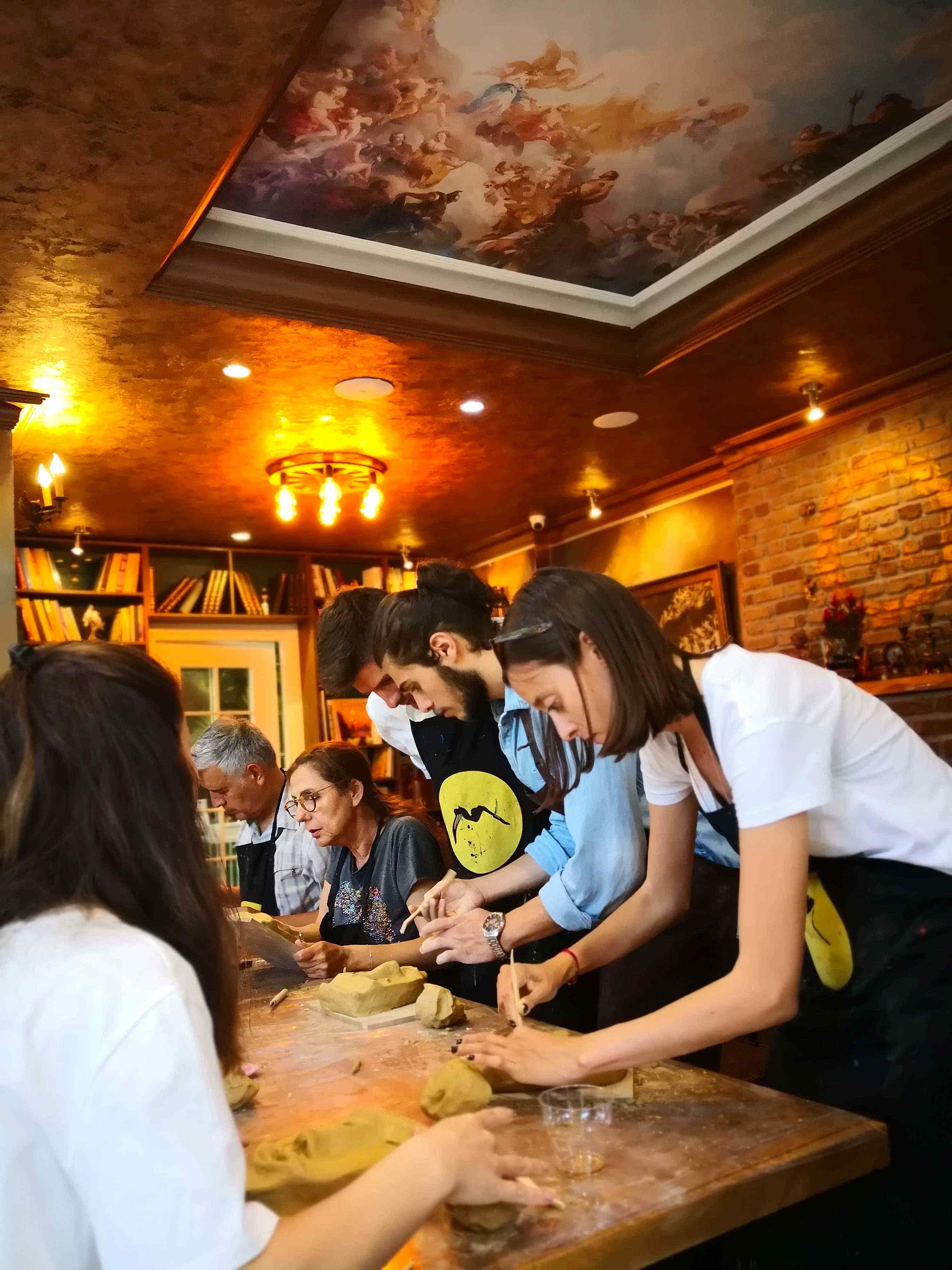FD Sanat Merkezi Heykel workshoplarında her katılımcı harika bir deneyimle mutlu, deşarj olmuş, kafasını boşalmış ve eli başarılı eseriyle dolu ayrılır. Nasıl mı? Öncelikle seansı yöneten heykeltıraşımız süre yönetimi ve işin en eğlenceli kısmı sizlere kalsın diye workshop öncesi seçerek geldiğiniz konu malzemelerini hazırlamış, modelaj kalemleriniz ve önlüklerinizle sizi beklerken, sizler sadece yiyecek ve içeceklerinizle belirlenen saatte atölyemizde bulunarak serüvene başlıyorsunuz. Heykeltıraşımızın detaylı anlatımıyla keyifli müzikler eşliğinde aşamalandırarak adım adım yönlendirmesi ile kendi yorumlarınızı da katarak keyifli sohbetler eşliğinde çalışmalarınızı tamamlıyorsuz. Bu etkinlikte katılımcılarımız yaratıcılıklarını kullanarak kile şekil verirken bir yandan da çamurla terapi tadında rahatlama ile unutamayacakları bir deneyim yaşar. Yetenekli ya da deneyimli olmaya gerek yok. Bu harika deneyimde önemli olan keyif almak ve sosyalleşerek güzel vakit geçirmek. Etkinlik sonrası final fotoğrafları ile her bir katılımcının kendi elleri ile yaptığı eseri sergilenmeye hatta kullandığımız özel kil sayesinde fırınlanmaya ihtiyaç duymadan havayla teneffüs ederek 1 hafta içinde kuruyacağından renklendirilerek ev veya ofisinizde kullanılmaya hazır olacak. Keyifli bir heykel atölyesi deneyimine hazır olun!