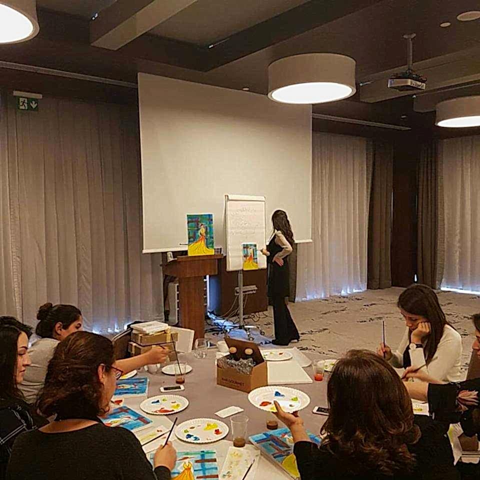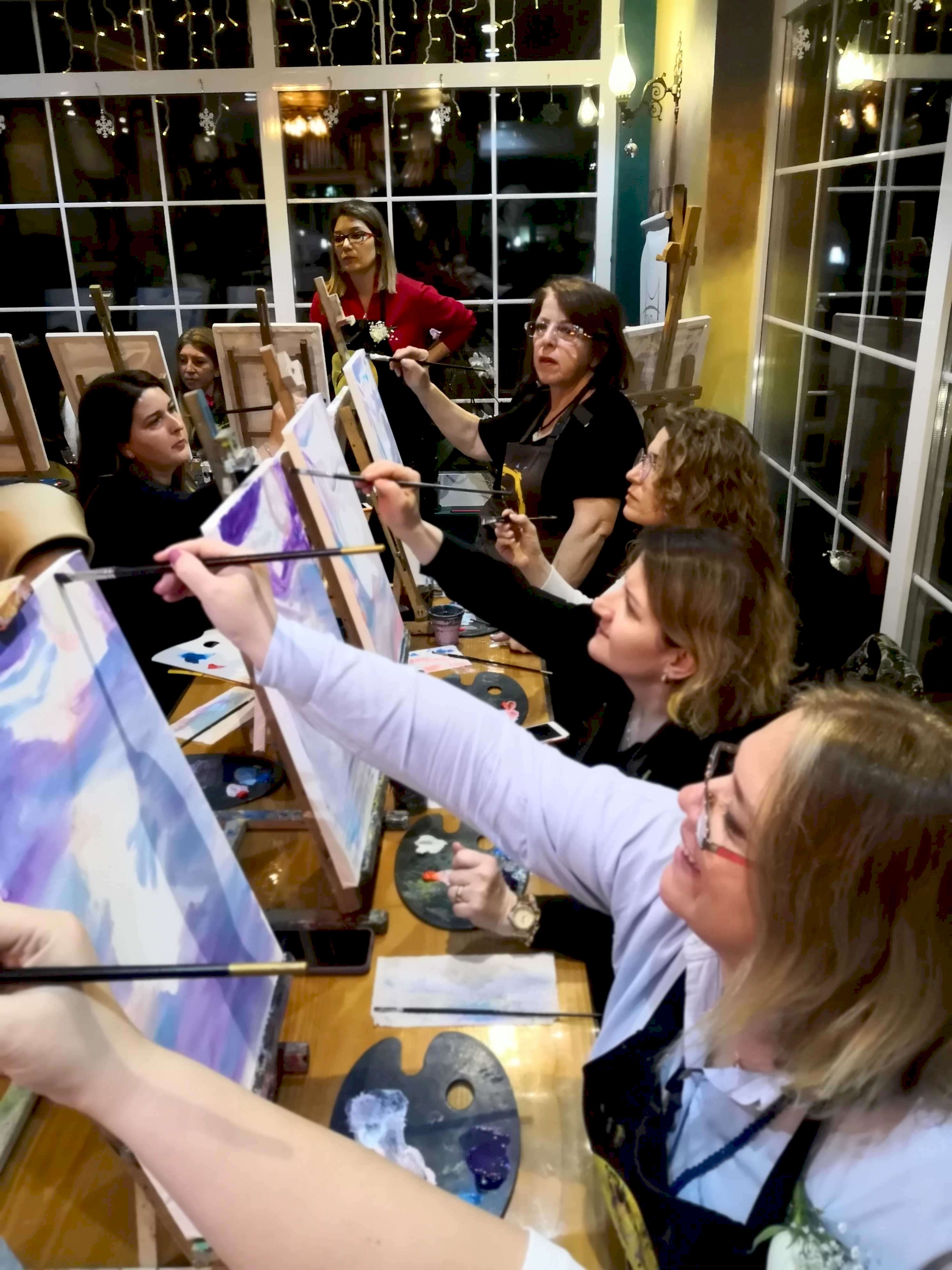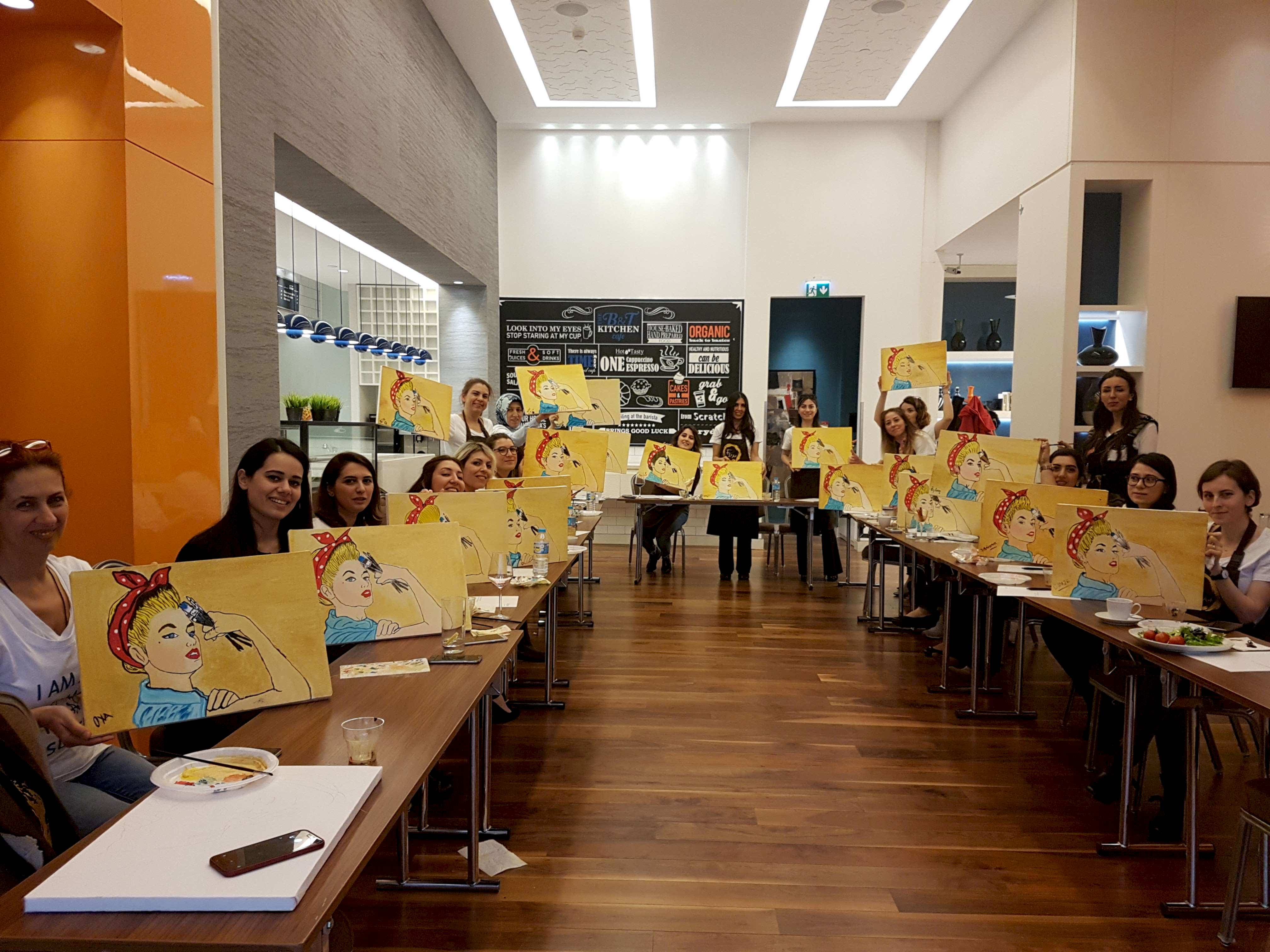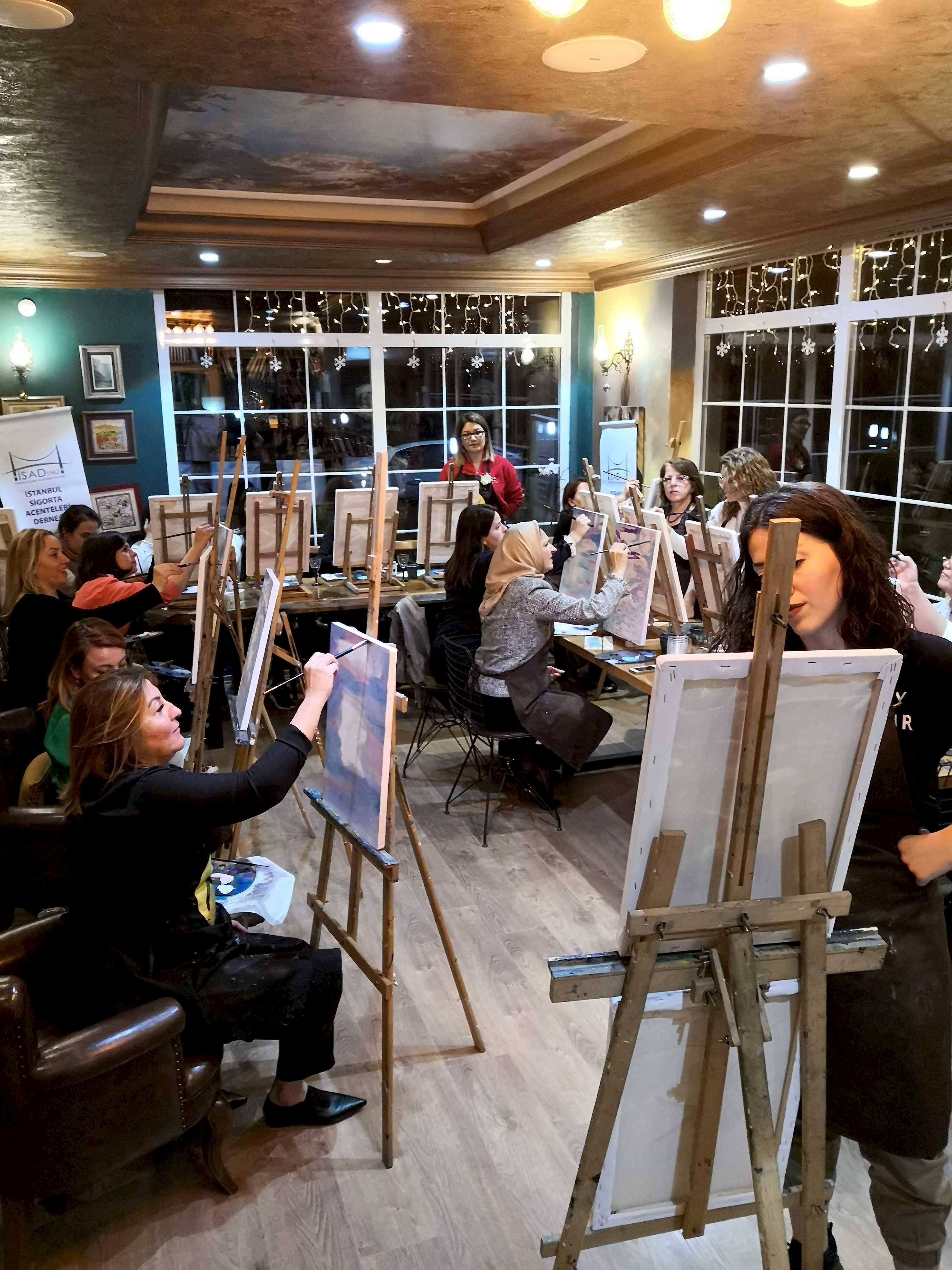 Bu etkinlikte katılımcılarımız hem fırçaları ile yaratıcılıklarını deneyimler hem de resim yapmanın renklerle terapi tadında unutamayacakları bir tecrübe yaşarlar. Yetenekli ya da deneyimli olmaya gerek yok. Bu harika deneyimde önemli olan keyif almak ve sosyalleşerek güzel vakit geçirmek.